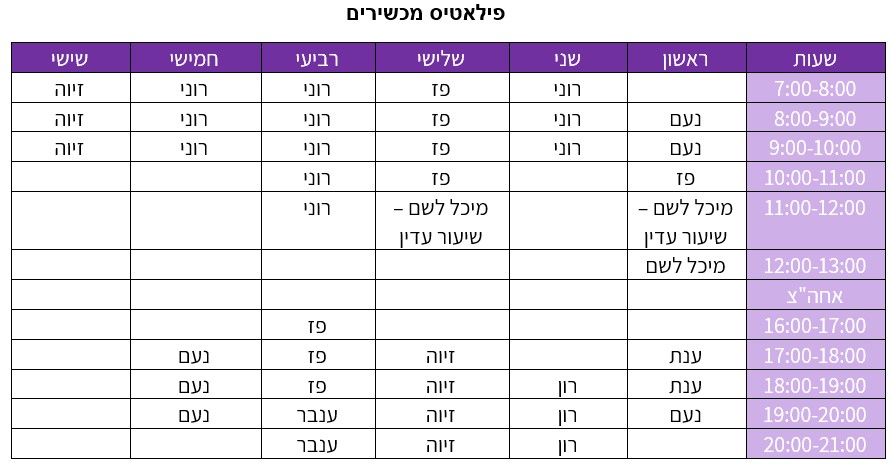 אפשר להשאיר הודעה במשיבון בטלפון בקווי 049800470 או לשלוח מייל ל-pazpilates@gmail.com